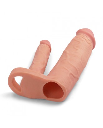 La gaine de pénis DOUBLE PENIS est un accessoire idéal pour donner plus de volume au sexe. Les deux godes permettent de simuler une double pénétration.